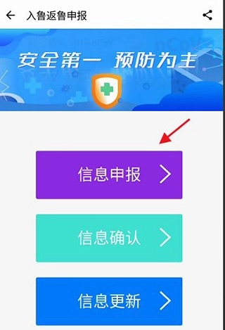 进入入鲁返鲁申报,找到信息申报,点击进入