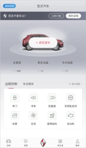 1、宝沃汽车应用是专门为宝沃汽车用户定制的,相关功能操作需要先绑定宝沃汽车;若未完成绑定,则仅能使用体验数据。