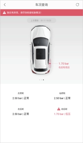4、车况信息:油电/车门/胎压,车况尽在掌控。