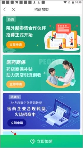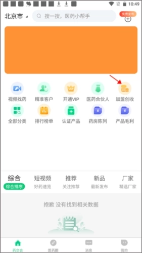 1、打开进入药械帮主界面后,点击主界面的“加盟创收”。
