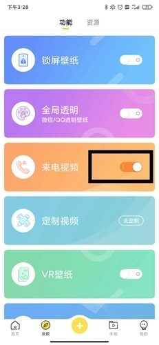首先打开熊猫动态壁纸安卓版,接着进入【发现】功能分区,在该分区内找到来电秀板块。若此前已设置过来电秀,其对应的开关会处于开启状态,此时只需点击关闭按钮,就能取消来电秀设置。