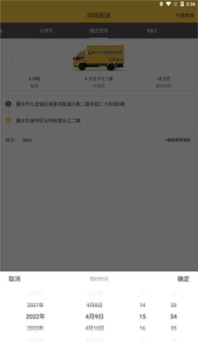 3、接着我们在首页挑选车型,之后输入寄件地址与收件地址。