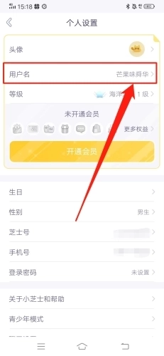 2、如此一来,我们便进入了“个人设置”界面,接着点击“用户名”选项。
