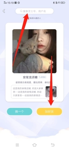 4、你可以通过上方的搜索栏添加好友,也能在下方添加感兴趣的好友,添加成功后就能开始聊天了。