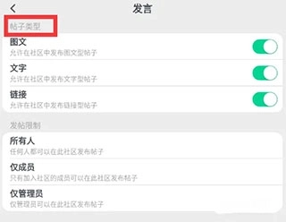 按需开启或关闭帖子类型对应的开关即可。