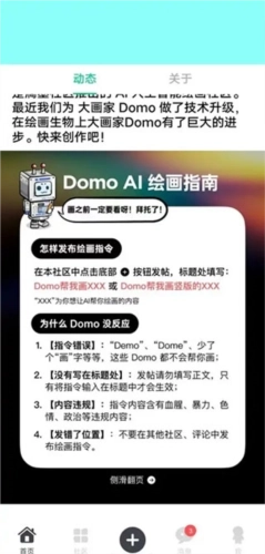 相信大家在滴墨社区里能结识不少志同道合的伙伴,这样就能和伙伴们畅快交流啦!不管你偏好什么类型的内容,在这里都能找到适合自己的圈子,尽情享受社交的乐趣~ 另外平台还配备了AI绘画功能,大家可以去“D/大画家Domo”社区体验这项功能,输入各类关键词,让AI为你生成各种趣味图片,再把自己创作的画作分享到社区里,感受最新鲜的功能体验,感兴趣的小伙伴赶紧来试试吧!