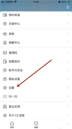 1、接着打开并进入CC语音软件,在主页点击右下角的【我的】,进入【个人信息】界面