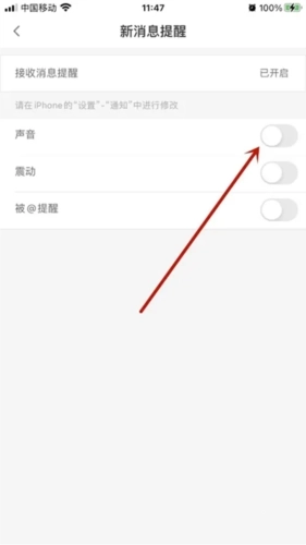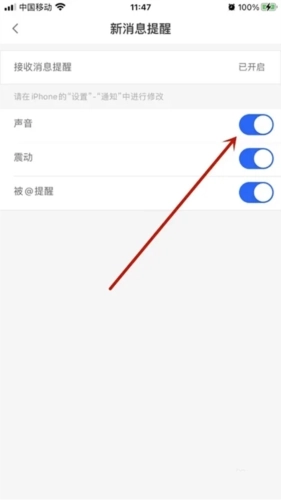4、最后,当【声音】后方的圆点变成蓝色时,就意味着CC语音的声音提醒已成功开启。