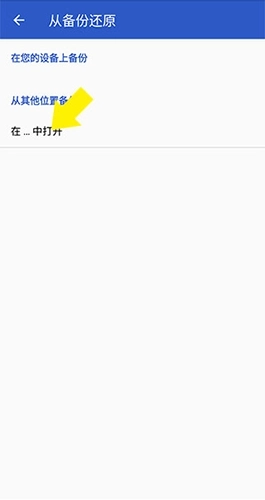 4、之后点击从其他位置备份下方的在...中打开并找到我们的备份文件即可
