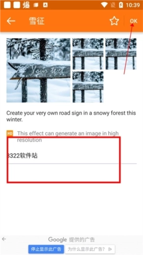 2、先来说说“雪征”,在这里仅能生成一条文字内容,中文、数字、英文均可使用,撰写完成后点击右上角的“OK”按钮即可。