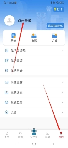 1、进入后,首先点击右上角“我的”,再点击页面上方的“点击登录”;