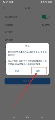 3、最后在弹出窗口中选择右侧“确定”,这样我们就能成功注销该账号了。