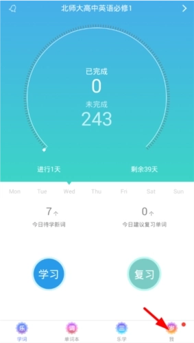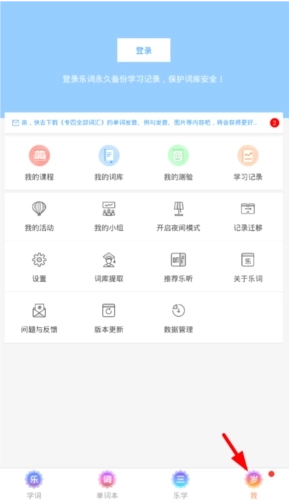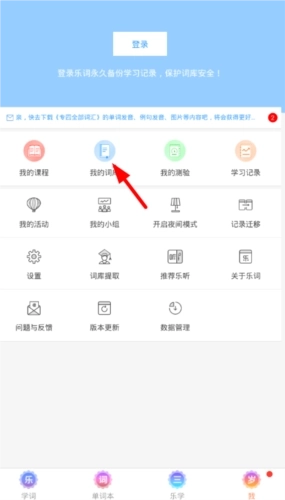 1、在乐词里完成课程学习后,若想删除词库以释放手机存储空间,可按照以下具体步骤操作。