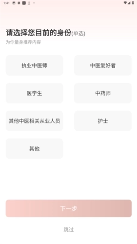 用户在进入软件之后,先要选择自己的职业,进入之后你可以看到1800余本古籍、4万名医病案、30万珍贵方剂等珍贵知识。中医一直都是我们重要的存在,可以通过望闻问切来直观的了解你的情况,没有复杂的操作,但是掌握中医还是比较难的,毕竟整个中医还是博大精深的。不仅如此,你还可以认识更多的中医专家,查看他们的社交圈。