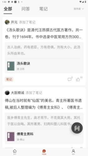 5、中医圈页面中,类似于朋友圈,可以在这里看专业人士发布的内容,以及自己有疑问的都可以在这里发布;