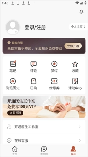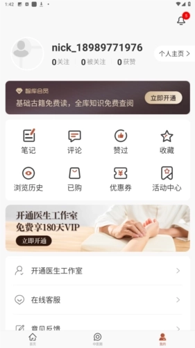 登录后进入个人中心界面中开通医生工作室即可免费享受180天vip会员资格