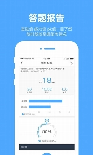 3、提供法考征途功能,让用户边玩游戏边刷题。