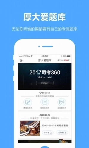 厚大爱题库安卓版是北京厚大轩成教育科技股份公司开发的一款非常好用的法考学习软件,这里包含了历年的考试真题,你可以去进行在线练习,去看看自己目前的学习情况。并且在厚大爱题库中还存在着许多的个性测评内容,你可以去进行测试,帮助广大小伙伴都能看到自己距离成功通关还有多少的距离,从而使你对自己有更多的了解。