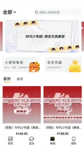 3、商城板块包含小葵花产品销售、会员充值功能,以及时代少年团《舞象之年》实体专辑的预售活动。