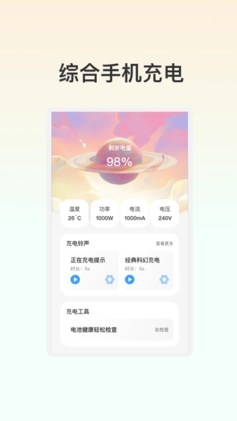 悠扬充电是一款专注于手机充电优化的软件,为不同机型的电池提供全方位防护,涵盖多种充电模式与电池管理方案,可有效提升电池续航时长并延长使用寿命,还能快速识别耗电应用并进行管理。若想体验更多实用功能,不妨试试悠扬充电!
