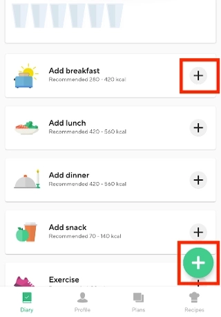-点击“日记”中右下角的“+”,然后选择要跟踪的膳食