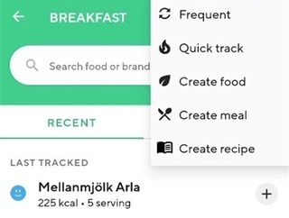 最近的:左侧的此部分显示你的跟踪历史记录,通过单击右侧的“+”,你可以轻松地重新跟踪最近添加到用餐中的项目