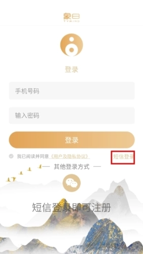首先,象曰用户可在本站获取最新版象曰应用,进入软件后会跳转至登录页面,您可以选择三种登录方式,分别是手机号加密码登录、短信验证码登录以及微信授权登录。