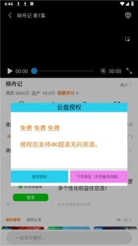 4、找到想看的影视剧集后,需先进行网盘授权才能正常观看哦。