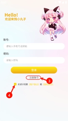 2、点击注册账号,并在下方的用户协议和隐私政策前打“√”