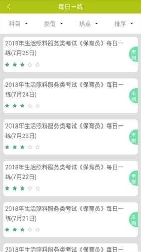 保育员题库手机版提供多样化的学习方式,满足不同用户需求。模拟考场助您体验真实考试氛围,每日一练让您保持学习状态。快速练习让您抓住重点,考点练习确保您覆盖所有知识点。更有特色错题练习,帮助您巩固薄弱环节,实现高效复习。