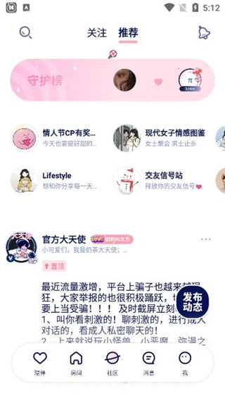 甜味陪伴是一款画风很可爱的女性向社交软件,不管你有什么需求,只要把它变成信号牌发出去,就会有人向你伸出援手。你可以试试恋爱剧本杀,双方要按照剧情推进,绝对是社交达人的心头好。要是喜欢唱歌,还能加入KTV房间,就算你嗓音一般也完全没问题。社区里还有不少有趣又热门的话题,你也可以多参与讨论哦。