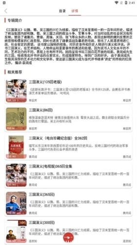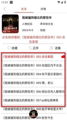 2、如果当前有你感兴趣的小说或者其他文学作品,直接点击便可进入,进入里面后,首先便是目录,在这里你可以选集播放。