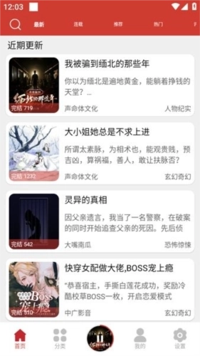 4、如果上首页的分类推荐里没有你感兴趣的内容,可以前往“分类”功能栏里,按照自己喜欢的标签进行作品搜索,如图: