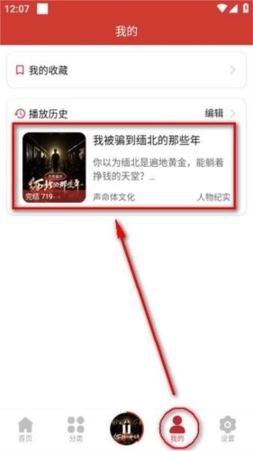 4、然后返回主界面,在底部点击“我的”,“播放历史”里面就是缓存;