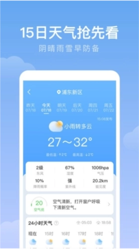 2.2空气质量:提供实时空气质量监测服务,支持PM2.5与AQI指数预报功能,还设有城市空气质量排行榜,为您的出行保驾护航。