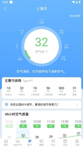 空气质量报告:对PM2.5、AQI等空气质量指标进行实时监测与展示,为用户的健康呼吸环境提供保障。