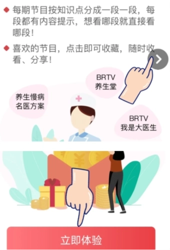 2、划过引导页,点击立即体验,进入。