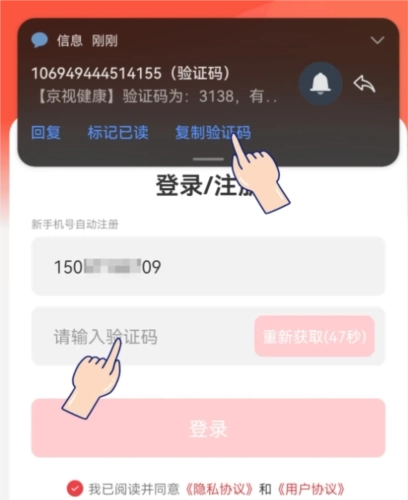 1、打开京视健康应用,点击同意相关协议。用户协议是国家监管部门的统一要求,我们承诺不会恶意窃取或泄露您的个人隐私,请您放心使用。
