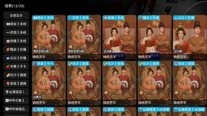 选项喜欢的影视内容后可以查看各种接口的影视