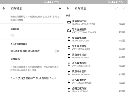 提供权限模板功能,可一键批量设置多个应用的特定权限