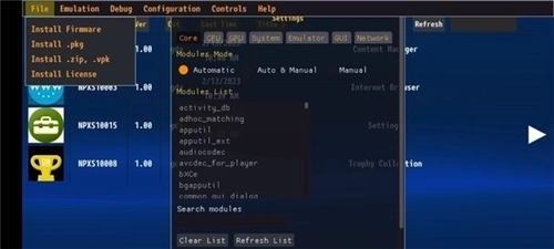1、双击打开Vita3k模拟器,点击左上角的文件按钮,你可以根据需求选择安装游戏文件的类型;