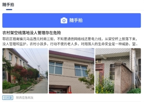 2、为陕西应急搭建线上服务渠道,用户可通过随手拍功能,在遇到紧急情况时及时提交申报,以便问题得到快速处理。