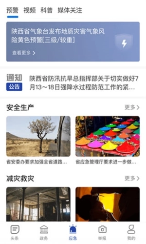 3、通过应急栏目,能了解最新的天气预报以及政府发布的预警通知。