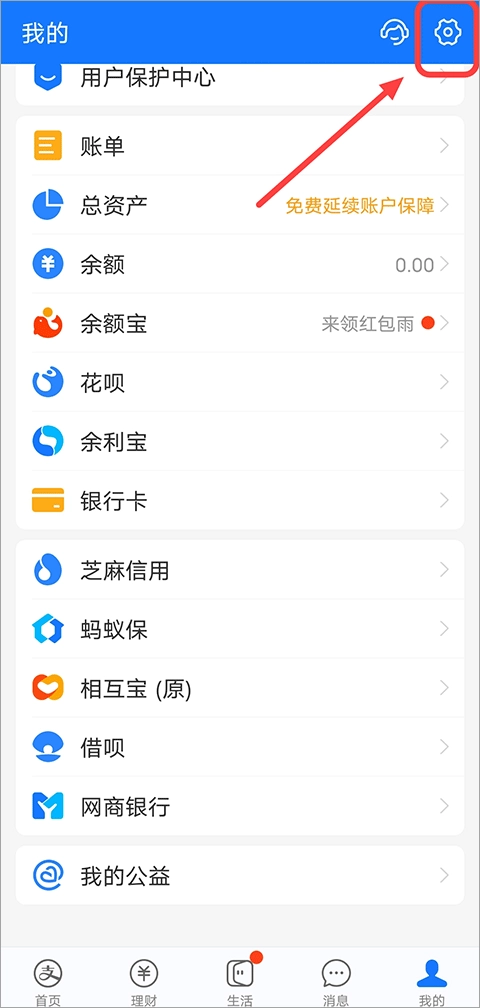这时我们你需要进到支付宝,在我的界面点击“设置”