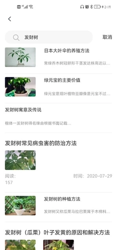 3、输入植物名称后,直接点击【搜索】按钮,就能查询到该植物的所有相关资讯与文章,方便大家详细了解其具体内容。