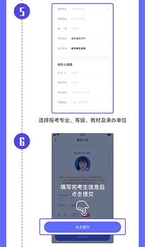 3、选择报考专业、等级、教材及承办单位,填写完考生信息后点击提交。