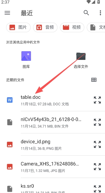 选择一个在己目录下存储的文件打开。