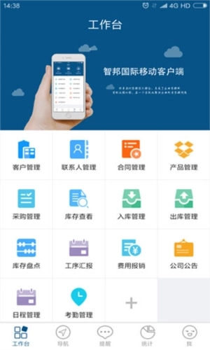 《智邦国际erp系统生产版》是北京智邦国际软件技术有限公司研发的一款便捷实用的内部系统管理软件。该软件为用户提供专业高效的办公管理模式,助力工作轻松开展。其平台负载能力出色,可支持数百万员工同时使用,全面覆盖客户、项目、合同、产品、采购、库存、发货、生产、售后、财务、办公、考勤、公告、报表等移动办公场景,还能实现数据在多终端间的实时同步。