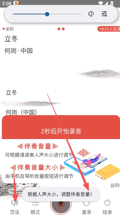 4、按照范读的范例参与录音挑战,注意保持录音环境的整洁,保证录制出的效果与当前k诗主题相契合。