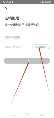 4、之后通过绑定的手机号获取验证码并输入,完成验证后点击“下一步”;
